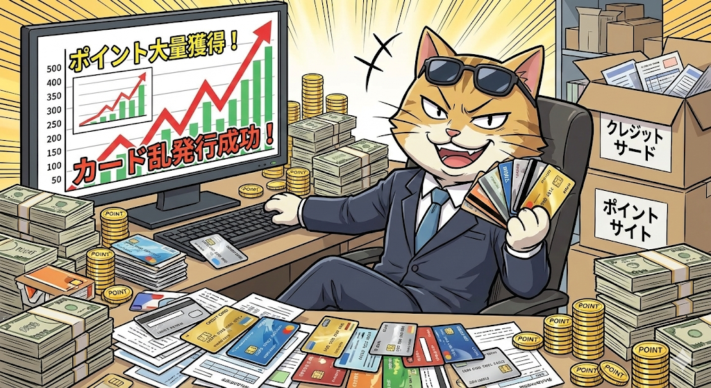 最初は驚いたのですが、例えばクレジットカード案件だと、新規発行だけで1万円分くらいポイントがもらえたりします。私のように会社勤めだと(生活実態がどうあれ)信用度が高く基本的に発行ができるので、ざっくり10分程度で1万円稼げるようなものです。最初は怪しい気もしますが、そういうものです。知るって大事ですね。